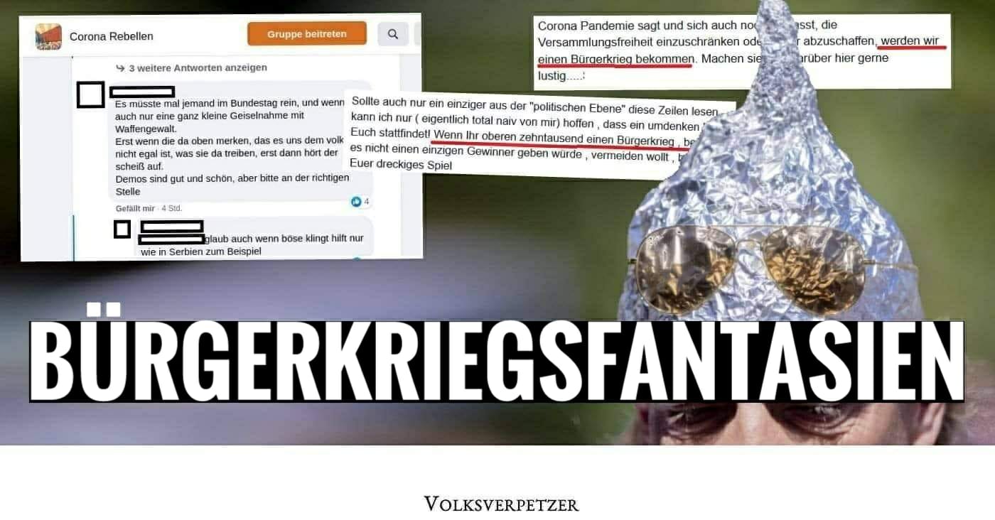 Dass diese immer weiter gehende Radikalisierung und Entfernung von Fakten und Vernunft nicht auf Dauer gut gehen kann, dafür sehen wir die ersten Anzeichen. Eine Bewegung, die ihre Größe gewaltig überschätzt, sich mit immer brutaleren Märchen weiter radikalisiert und dann nicht verstehen kann, warum die Mehrheit ihren Wahnvorstellungen nicht folgt, wird sich entweder verlaufen - oder gewalttätig werden. Angriffe auf Journalist*innen sind auf Corona-Demos keine Seltenheit mehr. Aber immer mehr Corona-Rebellen fantasieren von dem großen Knall.