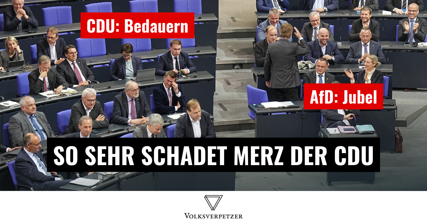 Merz hat für Wahlkampf-Spielchen die Brandmauer eingerissen und sein Versprechen gebrochen, nicht mit den Faschisten zusammenarbeiten. Die jubelten gestern im Bundestag als einzige. Die Konservativen und ihre Medien versuchen uns das als Erfolg zu verkaufen. Aber Merz hat den Anfang vom Ende der letzten verbliebenen konservativen Volksparteien in Westeuropa eingeläutet. Die CDU will den gleichen Weg gehen wie die Forza Italia, die VVD oder die ÖVP – als schwacher Juniorpartner und Mehrheitsbeschaffer für Rechtsextreme.