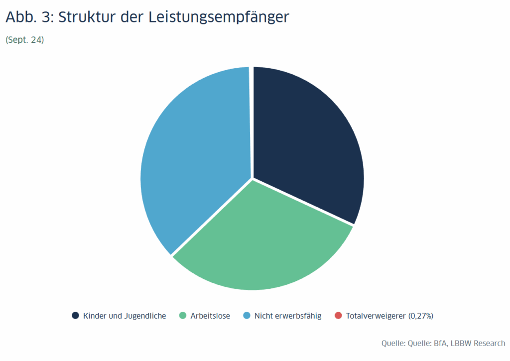 Ein Großteil der Neubeziehenden sind Frauen und Kinder, die vor Putins Invasion der Ukraine Schutz gesucht haben. Von den 5,5 Millionen Menschen sind viele einfach Kinder oder Personen, die aus gesundheitlichen oder familiären Gründen arbeitsunfähig sind. Nur ein kleiner Teil aller Leistungsempfänger könnte auch tatsächlich arbeiten. Insgesamt sind nur rund 1,7 Millionen Leistungsberechtigte tatsächlich arbeitslos – deutlich weniger als noch vor 15 Jahren.