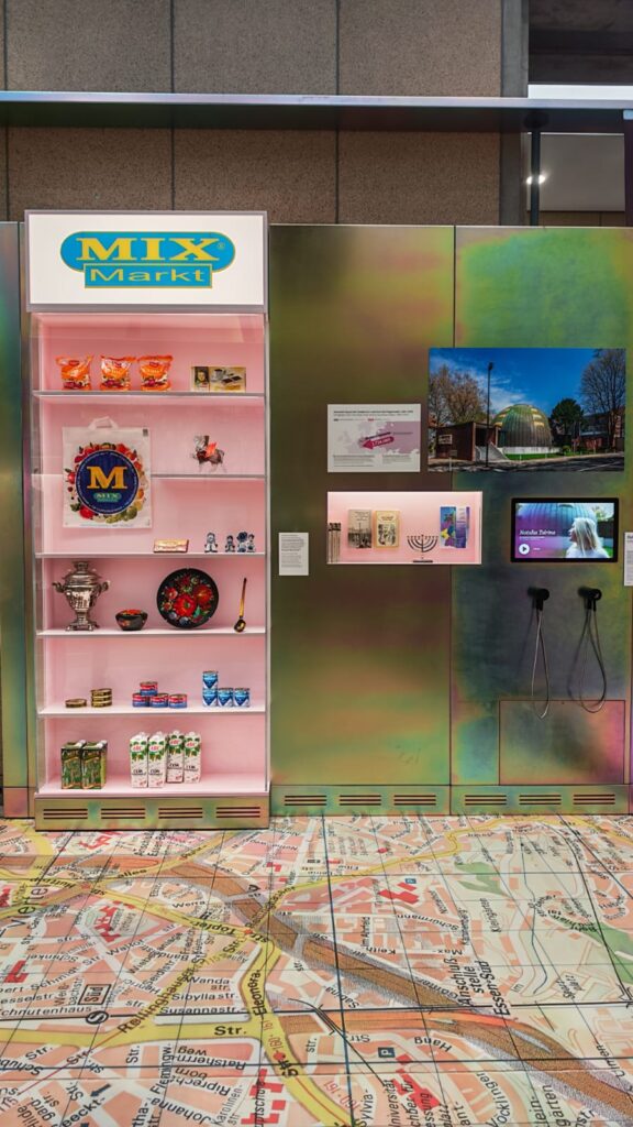 Dass die Einwanderung jüdischer Menschen aus der ehemaligen Sowjetunion rechtlich im Rahmen humanitärer Hilfsmaßnahmen begründet und als Akt der Wiedergutmachung für NS-Unrecht gedacht ist, hier historisch und juristisch auf völlig anderen Fundamenten steht als die Geschichte der russlanddeutschen (Späte-)Aussiedler:innen, scheint den Verantwortlichen im Haus der Geschichte entgangen zu sein. Hier wird pauschalisiert, wo Differenzierung der Bildungsauftrag wäre. Relevant ist hier aber vor allem die Rechtfertigung für die Mix Markt-Exponate selbst.