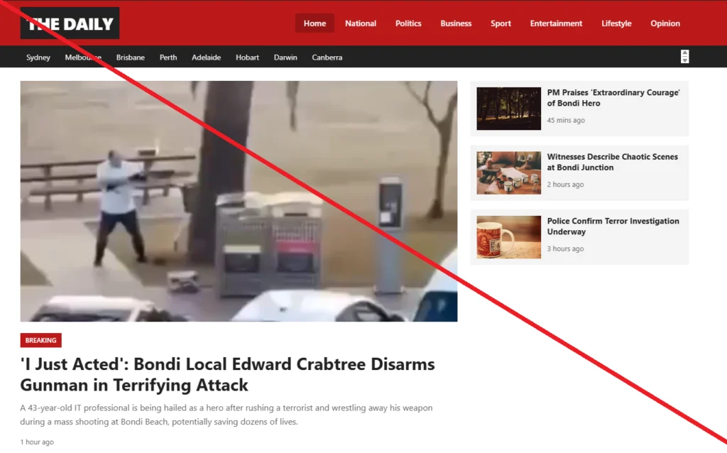 Die Seite mit dem Fake thedailyaus.world klingt so ähnlich wie eine echte News-Seite: https://thedailyaus.com.au.